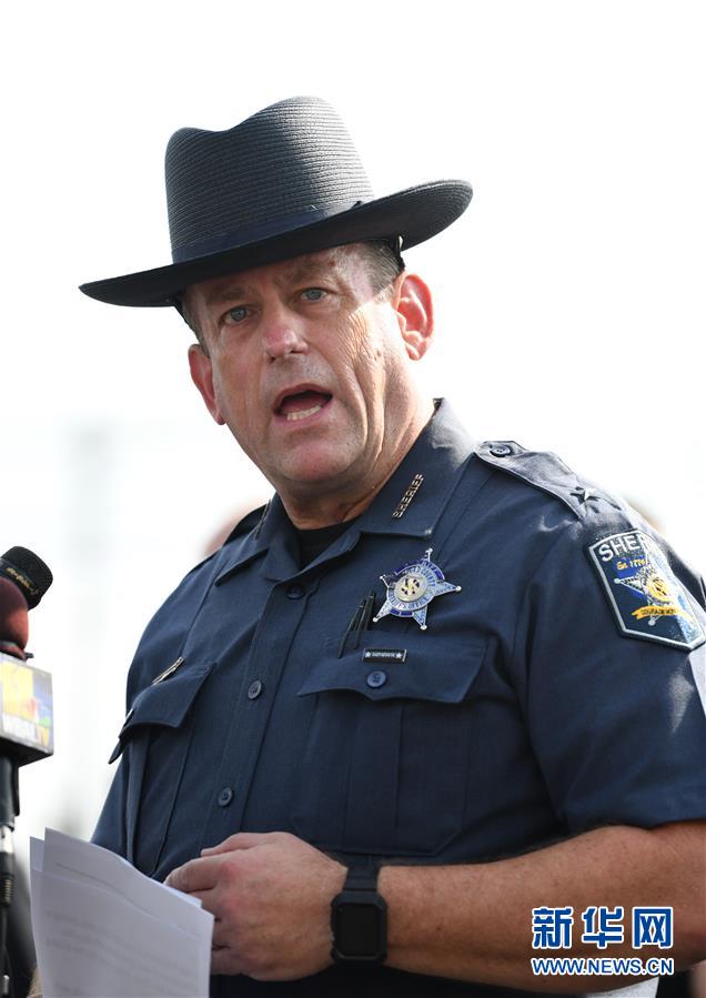 9月20日,在美国东部马里兰州哈福德县,哈福德县警长杰弗里·加勒在记者会上介绍枪击案情况。 当日,哈福德县一处企业园区发生枪击案,当地警方说枪击案造成数人死亡,另有数人受伤。 新华社记者 刘杰 摄