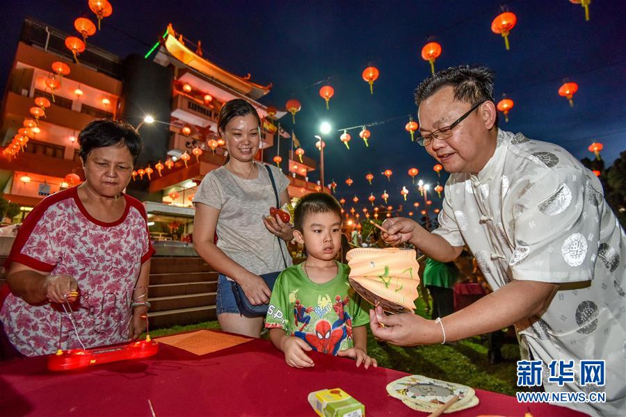9月23日,巴生当地华人举行迎中秋庆祝活动,以打灯笼、赏花灯等方式迎接中秋佳节。 新华社发(张纹综 摄)