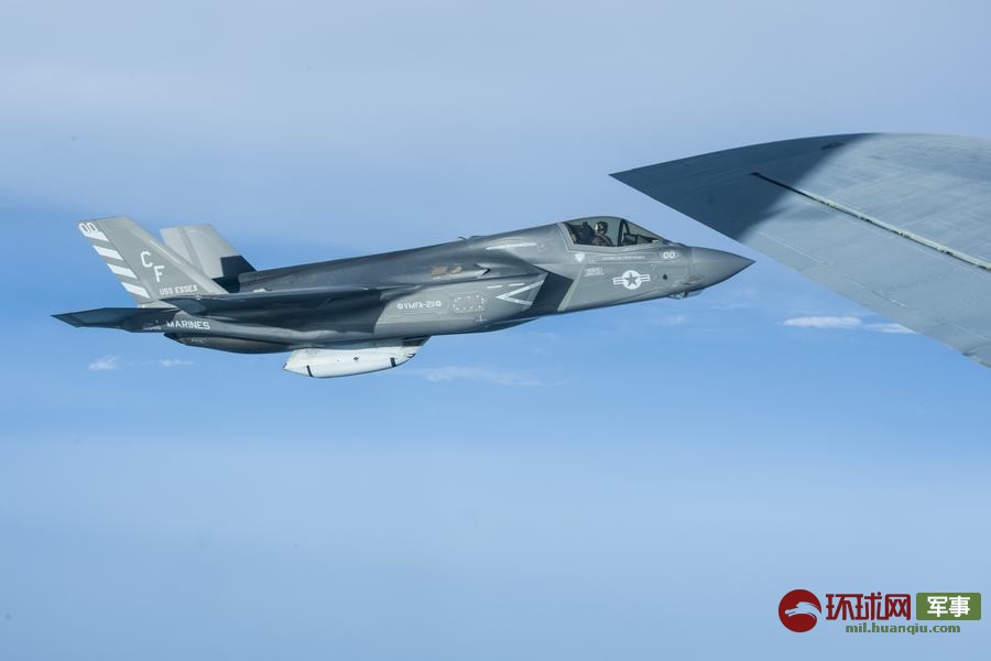 美军F-35B隐形机现身吉布提 挂载特制武器吊舱