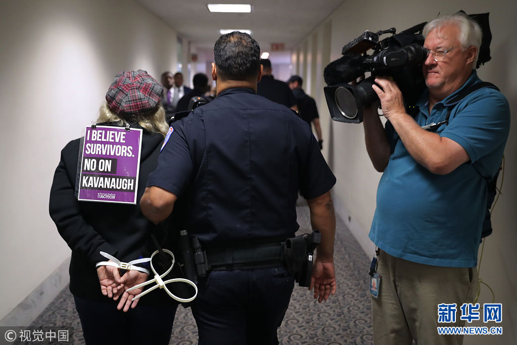 当地时间2018年9月25日,美国华盛顿,示威者来到国会抗议最高法院提名大法官布雷特·卡瓦诺。(图片来源:视觉中国)