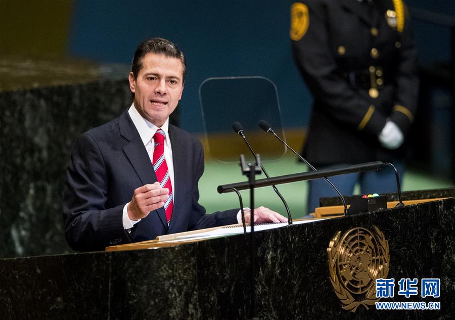 9月25日,在位于纽约的联合国总部,墨西哥总统培尼亚在联合国大会一般性辩论上发表演讲。新华社记者王迎摄