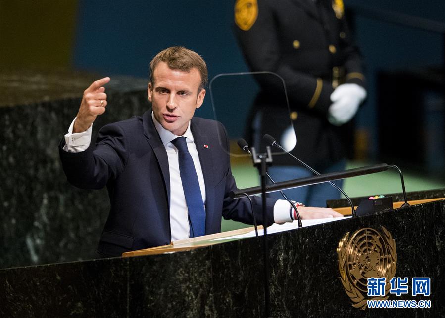 9月25日,在位于纽约的联合国总部,法国总统马克龙在联合国大会一般性辩论上发表演讲。新华社记者王迎摄