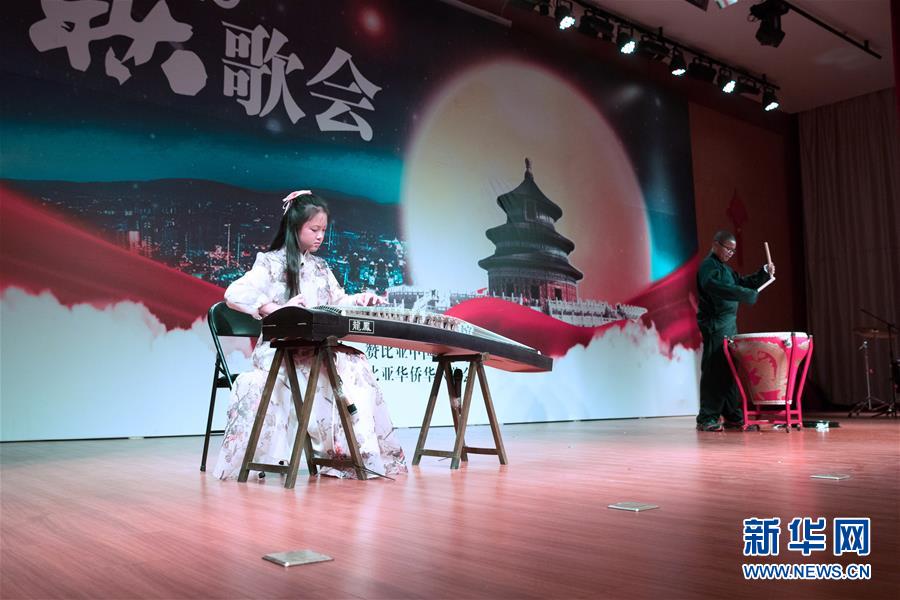 9月23日,在赞比亚首都卢萨卡,参演选手演奏乐曲《鸣筝号鼓》。 赞比亚第四届中秋歌会23日在首都卢萨卡隆重举行。中国驻赞比亚大使李杰、驻赞使馆馆员、华侨华人代表等600余人欢聚一堂,共度中秋佳节。 新华社记者彭立军摄