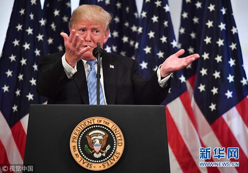 当地时间2018年9月26日,美国纽约,第73届联合国大会举行,美国总统特朗普召开新闻发布会。(图片来源:视觉中国)