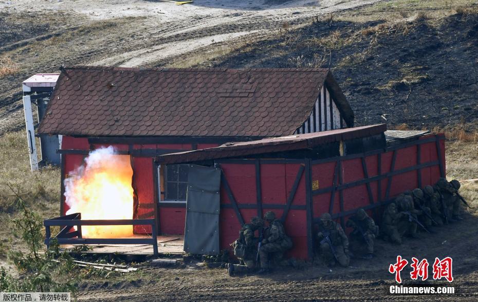 德国陆军举行军事演习 女兵举机枪扫射“发舞飞扬”