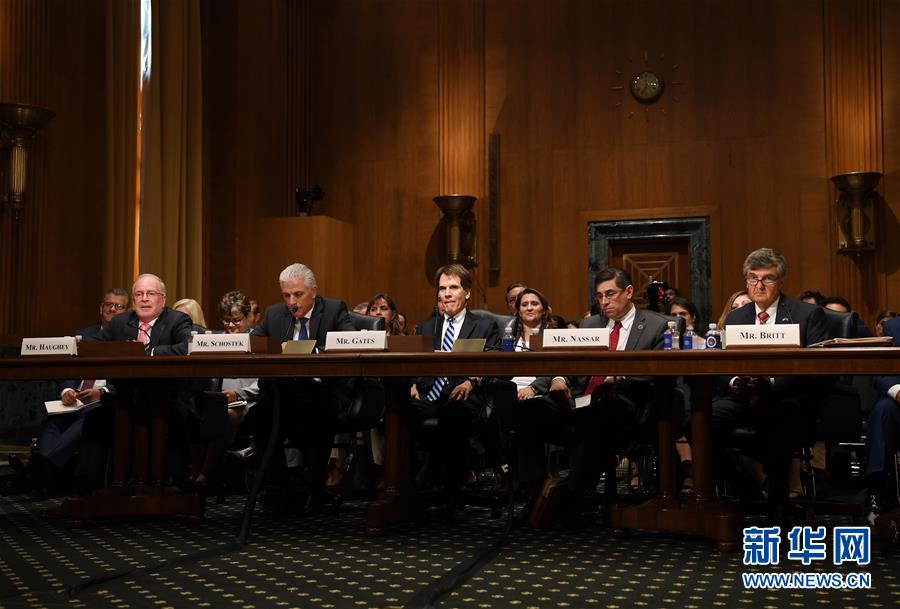 9月26日,在美国首都华盛顿,美国汽车行业代表(第一排)参加国会参议院财政委员会召开的听证会。新华社记者刘杰摄