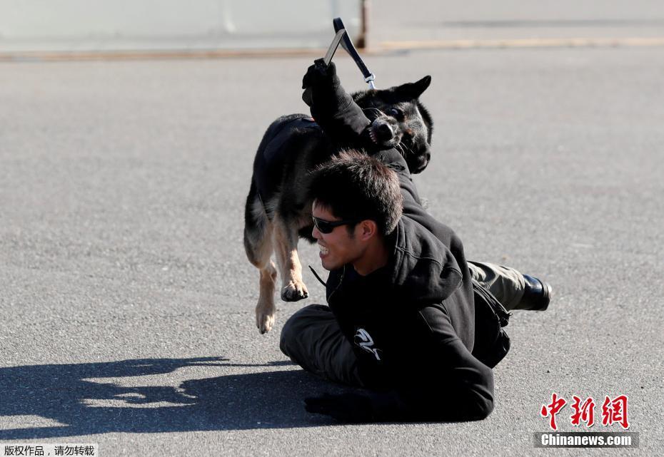 日本警方举行2020年奥运会安保演习 警犬凶猛扑咬