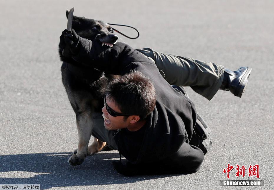 日本警方举行2020年奥运会安保演习 警犬凶猛扑咬
