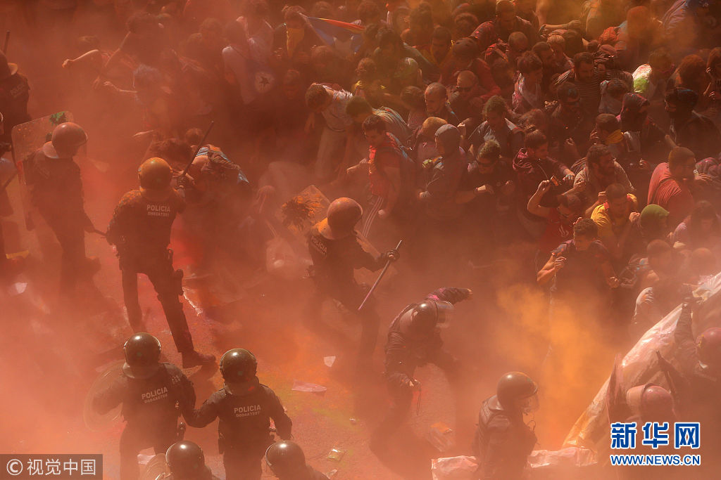 加泰罗尼亚分离主义者举行抗议 与警察发生冲突