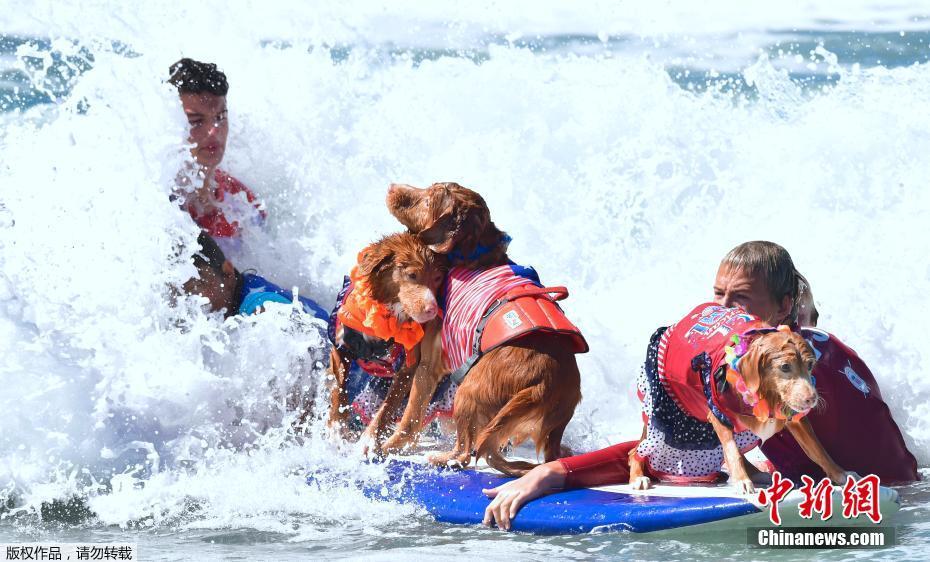 狗狗向前冲!美国海滩举办汪星人冲浪大赛