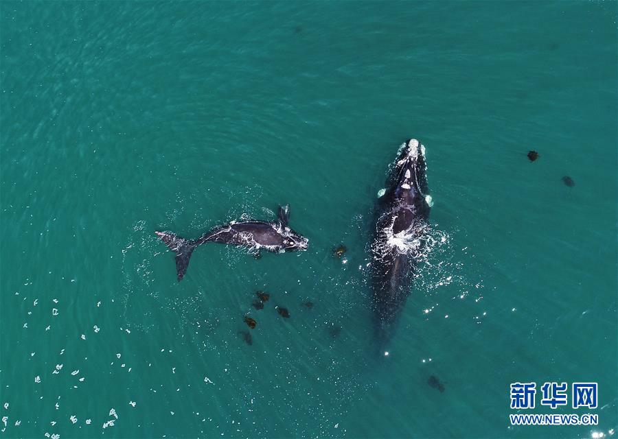 9月30日,在南非赫曼纽斯小镇附近海面上,南露脊鲸在海岸边畅游。 9月29日,位于开普敦以东约115公里的赫曼纽斯小镇迎来2018年的鲸鱼节,来自世界各地的游客可乘船出海观鲸,也可在岸边等待鲸鱼的到来。 新华社记者陈诚摄