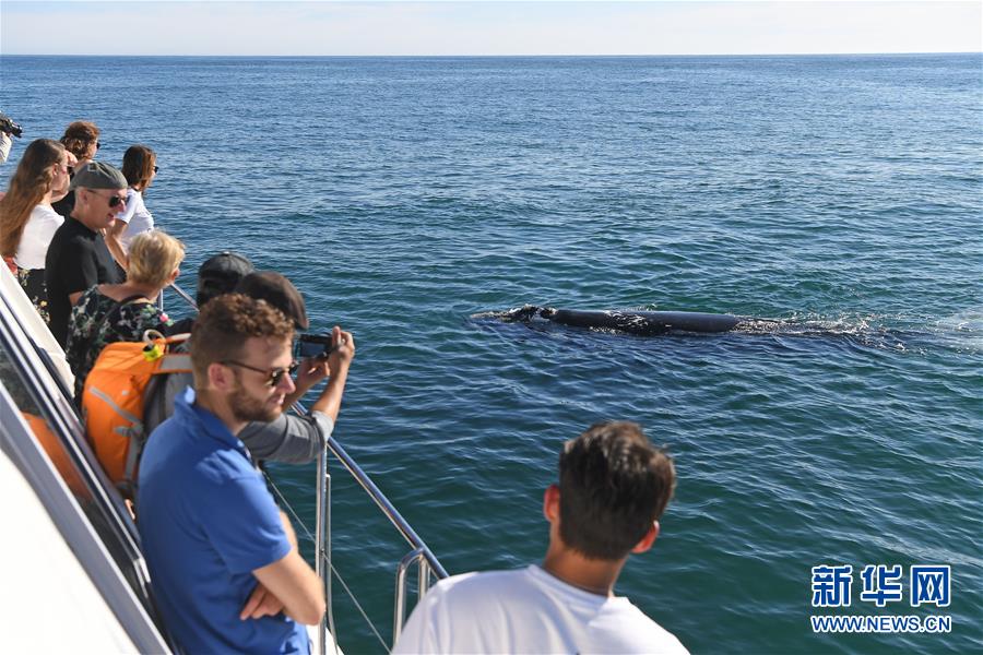 9月30日,在南非赫曼纽斯小镇,游客乘船出海近距离欣赏南露脊鲸。 9月29日,位于开普敦以东约115公里的赫曼纽斯小镇迎来2018年的鲸鱼节,来自世界各地的游客可乘船出海观鲸,也可在岸边等待鲸鱼的到来。 新华社记者陈诚摄