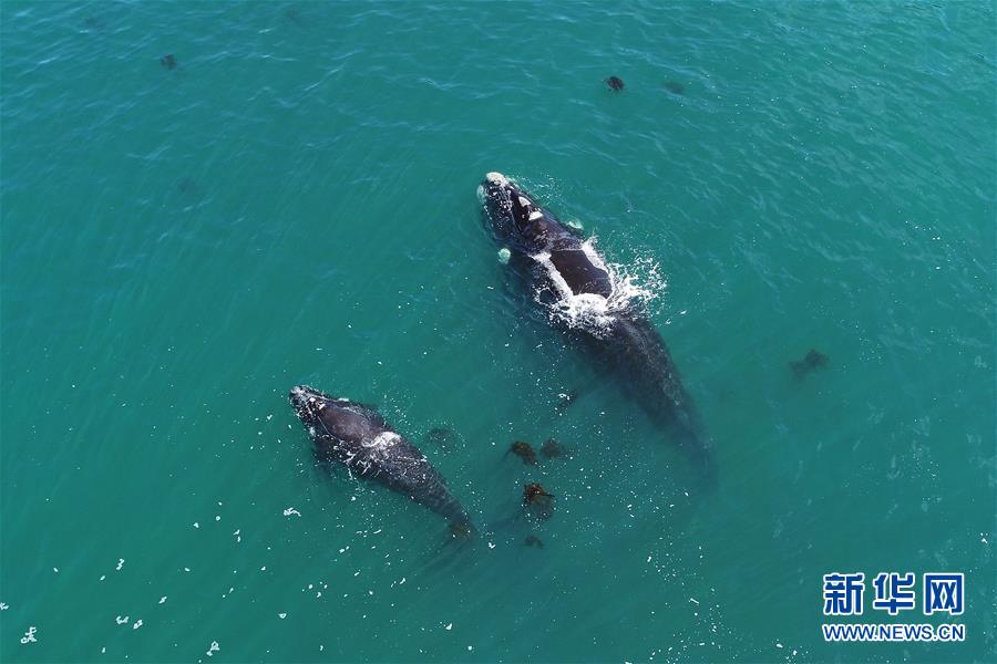 9月30日,在南非赫曼纽斯小镇附近海面上,南露脊鲸在海岸边畅游。 9月29日,位于开普敦以东约115公里的赫曼纽斯小镇迎来2018年的鲸鱼节,来自世界各地的游客可乘船出海观鲸,也可在岸边等待鲸鱼的到来。 新华社记者陈诚摄