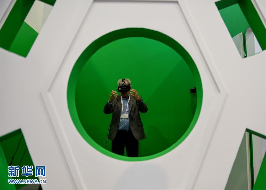 10月1日,在德国不来梅,参观者体验VR太空舱。 第69届国际宇航大会1日在德国不来梅会展中心拉开帷幕,来自世界各地的6300多名宇航员、航天机构和企业代表、专家学者与青年学生等出席。 新华社记者 连振 摄