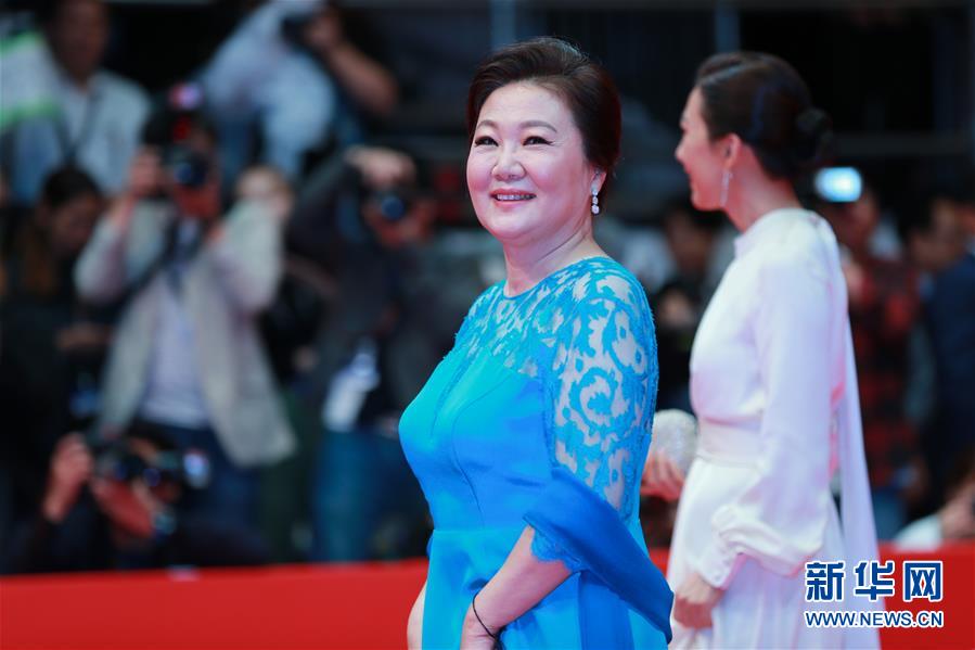 10月4日,在韩国釜山,演员金海淑(前)亮相第23届釜山国际电影节开幕式红毯。 新华社记者王婧嫱摄