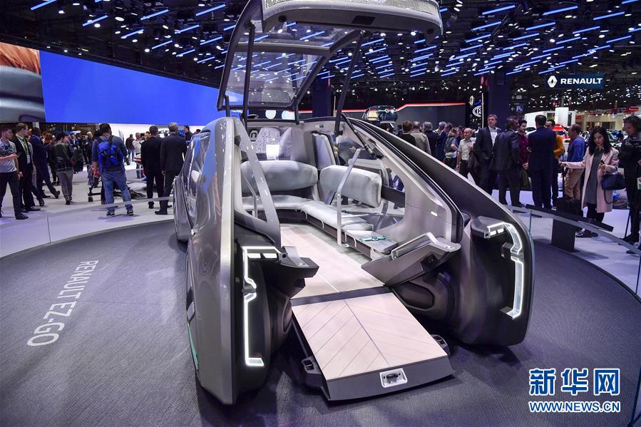 这是10月3日在法国巴黎拍摄的雷诺品牌概念车EZ-Go。 2018巴黎国际车展于10月4日至14日在法国巴黎凡尔赛门展览中心举行。 新华社记者 陈益宸 摄