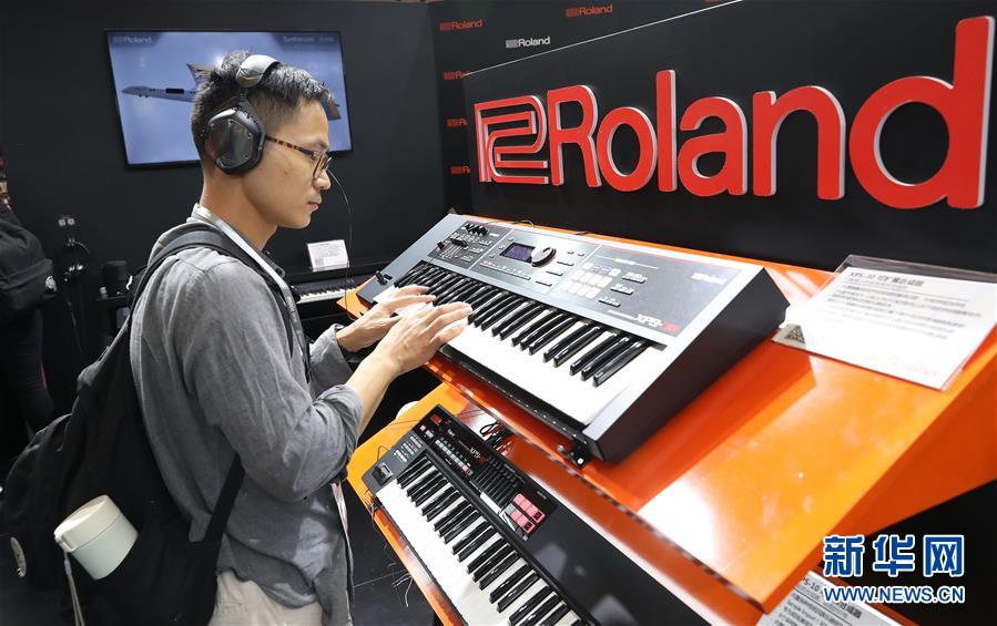 10月10日,一位参观者在试用电子琴新产品。 新华社记者 方喆 摄