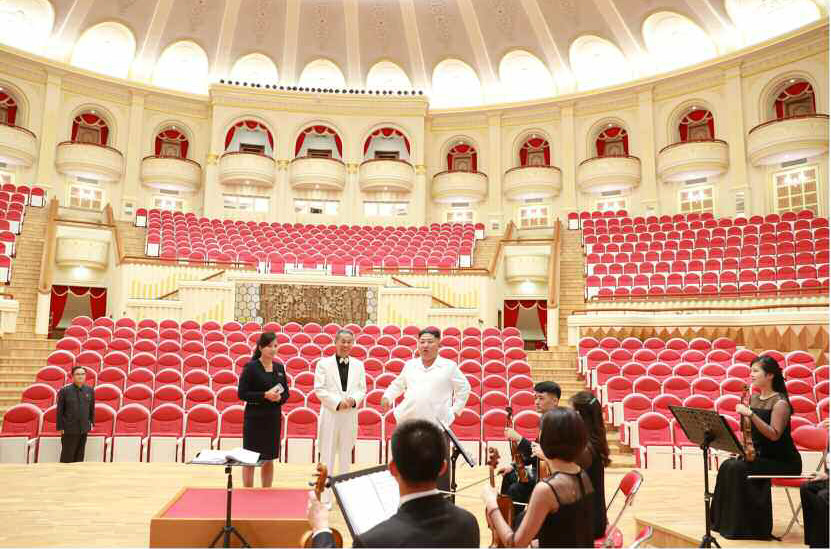 朝鲜最高领导人金正恩参观三池渊乐团剧场