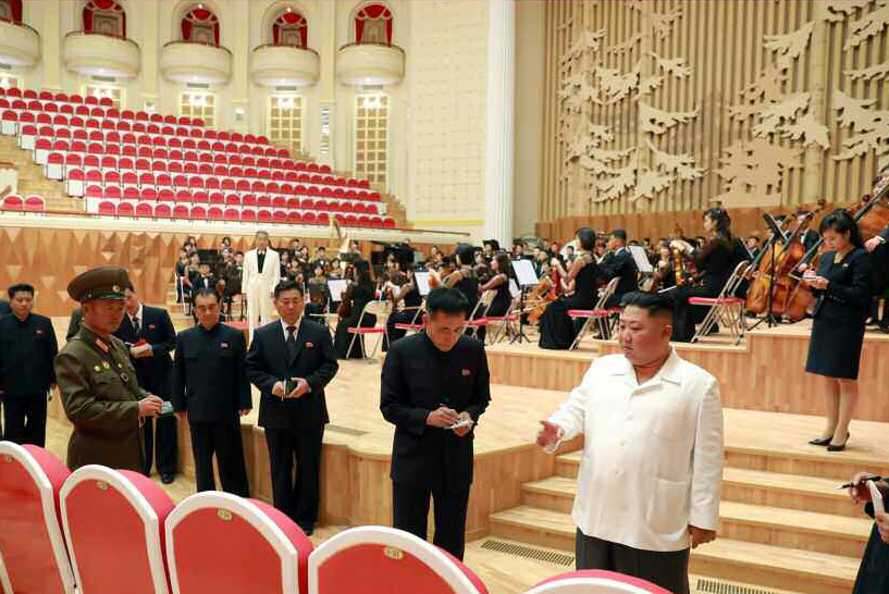 朝鲜最高领导人金正恩参观三池渊乐团剧场