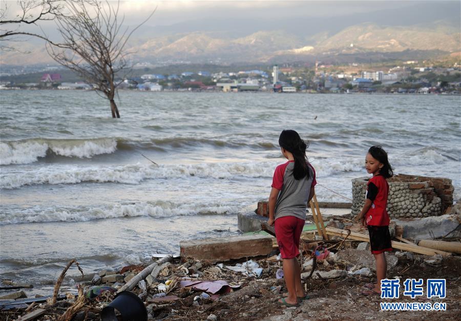 10月10日,在印度尼西亚中苏拉威西省帕卢市,两个女孩站在岸边看着大海。 印度尼西亚抗灾署11日宣布,印尼中苏拉威西省日前发生的强烈地震及地震引发的海啸已经造成2073人死亡,搜救工作将于12日下午正式结束。 新华社发(王申 摄)