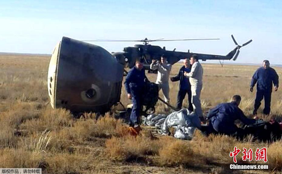 工作人员在坠落残骸现场检查。俄将成立国家调查委员会调查事故。