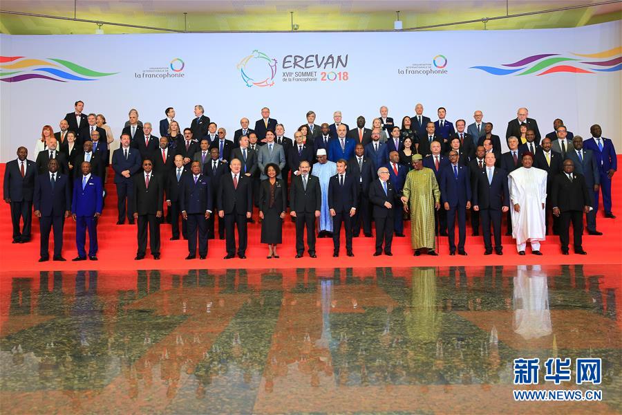 10月11日,在亚美尼亚首都埃里温,与会者在第十七届法语国家组织峰会开幕式上合影。 为期两天的第十七届法语国家组织峰会11日在亚美尼亚首都埃里温开幕,20余位法语国家和地区的领导人出席。 新华社发(格扎拉扬摄)