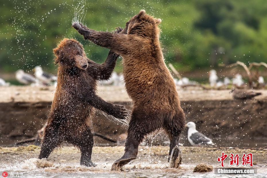 两头棕熊上演夺权大战 场面激烈似动作大片