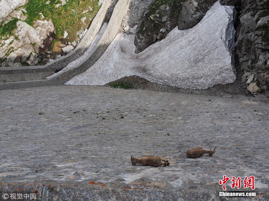 挑战地心引力!意大利山羊爬上高度陡峭大坝舔食矿物质