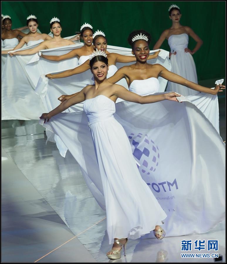 10月14日,参赛选手在总决赛中展示风采。当日,“2018环球旅游小姐世界总决赛”在宁夏中卫沙坡头落幕。本次大赛以“大漠风尚·璀璨中卫”为主题,来自世界各地的47名选手参加角逐。 新华社发(张风 摄)