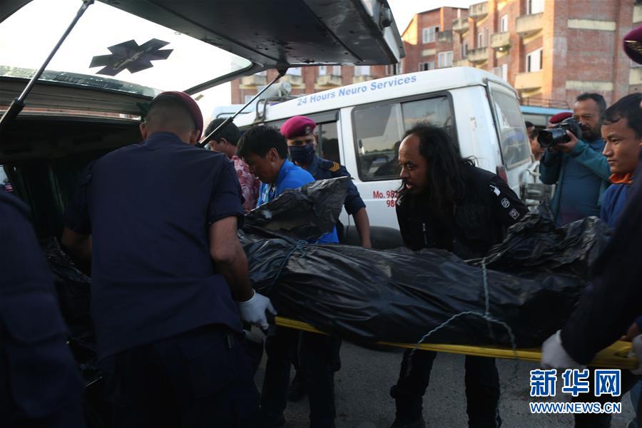 10月14日,在尼泊尔加德满都,人们运送遇难者遗体。 世界第七高峰道拉吉利峰南坡12日发生雪崩,造成9名登山者死亡,其中包括5名韩国人和4名尼泊尔人。 新华社发(苏尼尔·夏尔马 摄)