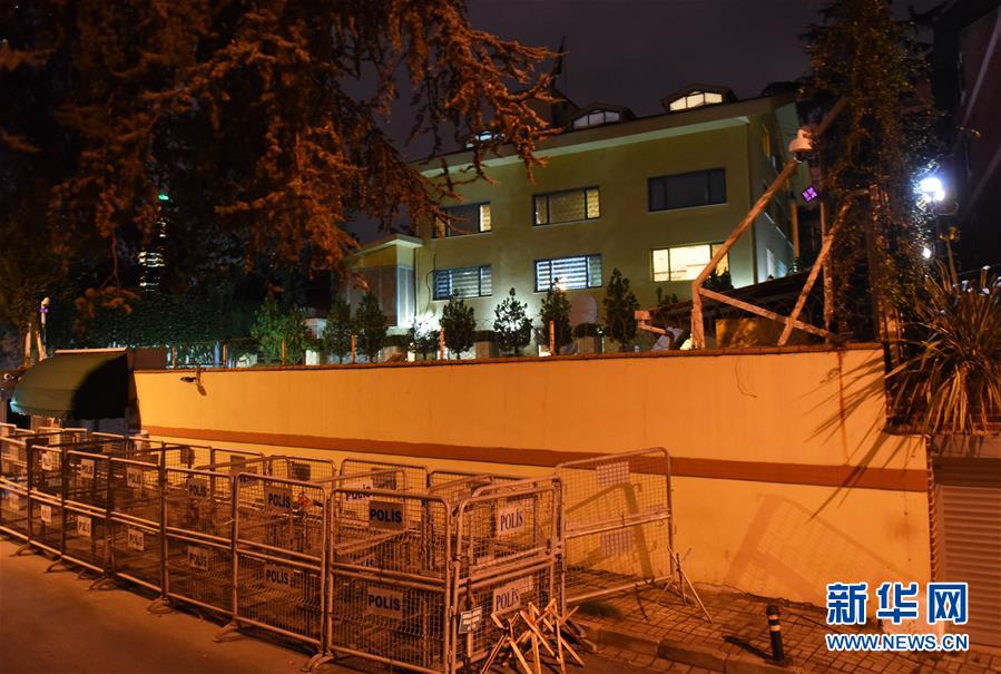 这是10月15日在土耳其伊斯坦布尔拍摄的沙特阿拉伯驻伊斯坦布尔领事馆。 一个土耳其调查小组15日晚进入沙特阿拉伯驻土耳其伊斯坦布尔领事馆,就沙特记者卡舒吉“失踪”事件展开调查。 新华社记者 贺灿铃 摄