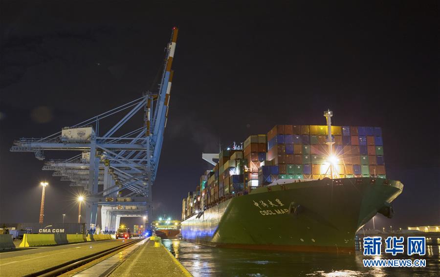 10月15日晚,中远海运旗下的“中海火星”号集装箱轮停靠在比利时泽布吕赫港集装箱码头。经过约8个小时的连夜装卸后,“中海火星”号集装箱轮结束本次西欧之行,踏上返回亚洲的航程。2018年1月22日,中远海运港口公司与比利时泽布吕赫港务局签署集装箱码头特许经营权协议,使其在国际海运尤其是西北欧航线中的重要性显著提升。随着“一带一路”倡议加速亚欧大陆互联互通,中远海运计划在5年内将泽布吕赫港集装箱码头年吞吐量增加到200万标准箱。新华社记者 叶平凡 摄
