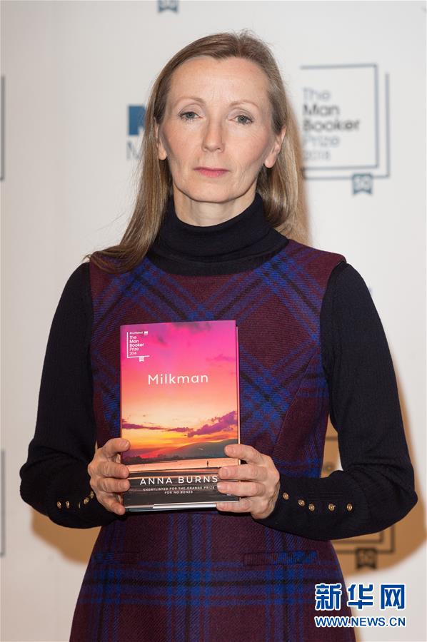 10月14日,在英国伦敦,英国女作家安娜·伯恩斯在拍照式上与作品《送奶工》合影。 2018年度英国布克文学奖16日晚揭晓,英国女作家安娜·伯恩斯凭借小说《送奶工》获此殊荣。她是布克奖49年历史上第17位获奖女性。 新华社发(雷伊·唐摄)