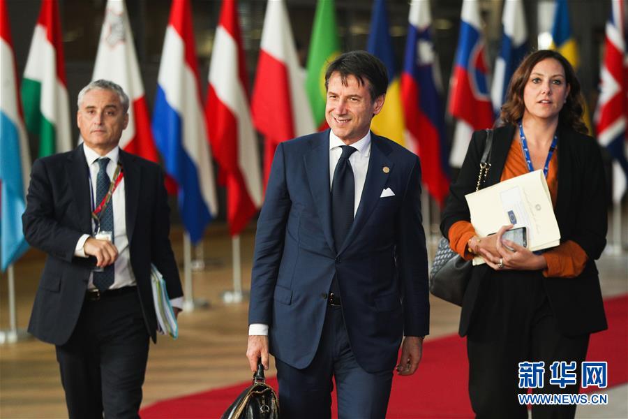 10月17日,在比利时布鲁塞尔的欧盟总部,意大利总理孔特(中)出席欧盟秋季峰会。 2018年欧盟秋季峰会于17日和18日在布鲁塞尔召开,英国脱欧、欧盟改革和移民问题将是峰会讨论重点。 新华社记者 郑焕松 摄