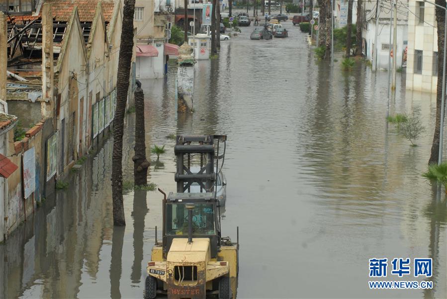 10月18日,在突尼斯首都突尼斯市,暴雨造成道路积水。 突尼斯内政部18日发布声明说,突尼斯全国大部分地区17日晚出现强降雨,截至目前,共有5人在暴雨引发的各种事故中死亡,另有2人失踪。 新华社发(阿代尔 摄)