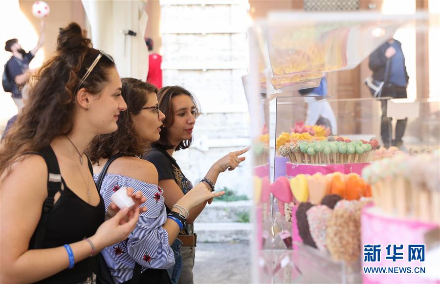 10月19日,游客在意大利佩鲁贾举行的“欧洲巧克力节”上选购巧克力。 当日,第25届“欧洲巧克力节”在有“巧克力之城”美誉的意大利中部城市佩鲁贾开幕。在为期十天的节日期间,人们不仅可以品尝到各种美味的巧克力,还能参与多种巧克力相关的文化休闲活动。 新华社记者程婷婷摄