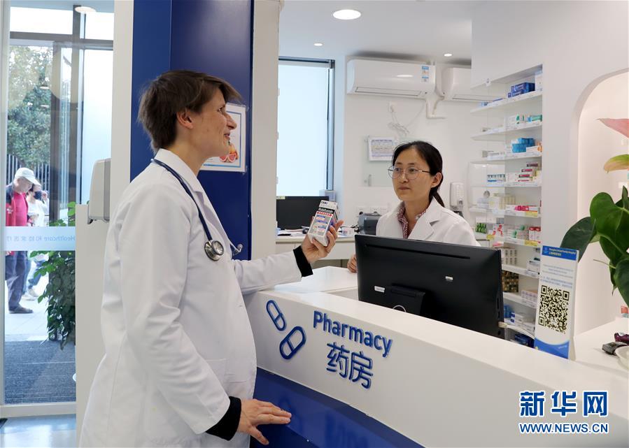 在位于上海闵行区的和睦家医疗门诊部,全科医生萨瑞艾在和药师交流(10月11日摄)。
