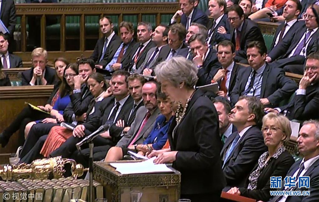 当地时间2018年10月22日,英国伦敦,英国首相特雷莎·梅在下议院向国会议员发表声明,寻求脱欧战略支持。特雷莎·梅称尽管她再次拒绝了欧盟关于爱尔兰边界问题的提议,但坚信与欧盟的脱欧协议谈判已经接近尾声。(视频截图)(图片来源:视觉中国)