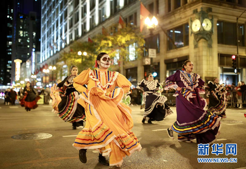 10月20日,在美国芝加哥,人们参加万圣节游行。 新华社记者汪平 摄