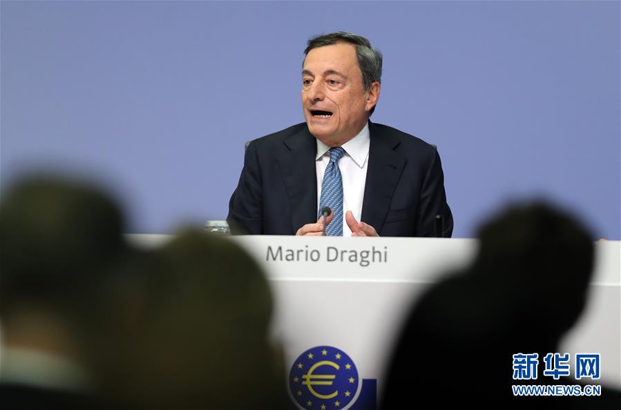 10月25日,在德国法兰克福的欧洲中央银行总部,欧洲央行行长德拉吉出席新闻发布会。 新华社记者 罗欢欢 摄