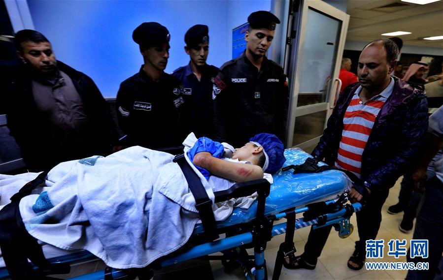 10月25日,在约旦首都安曼西南马因温泉一带,一名受伤学生在医院接受治疗。 约旦首相府25日晚发表声明说,由于强降雨引发山洪,约旦一所学校的师生在郊游途中遭遇险情,目前已造成包括师生在内的18人死亡,另有数十人失踪。 新华社发(穆罕默德·阿布·古什摄)