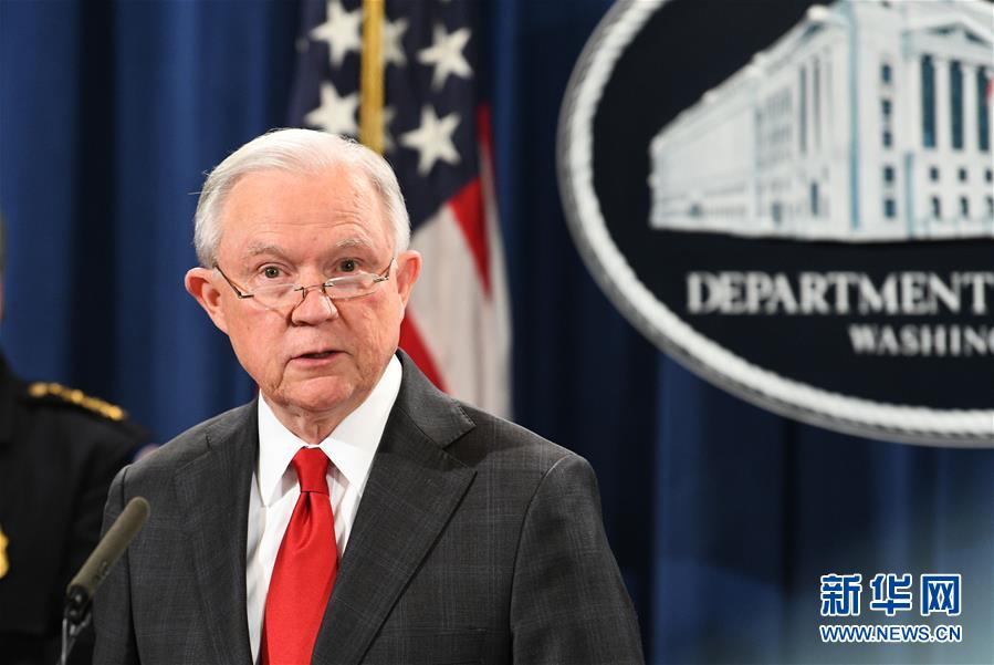 10月26日,在美国首都华盛顿,美国司法部长塞申斯出席新闻发布会。 美国执法机构26日在东南部佛罗里达州逮捕一名涉嫌邮寄多个有爆炸装置包裹的男子,并对其提出5项犯罪指控。 新华社记者刘杰摄