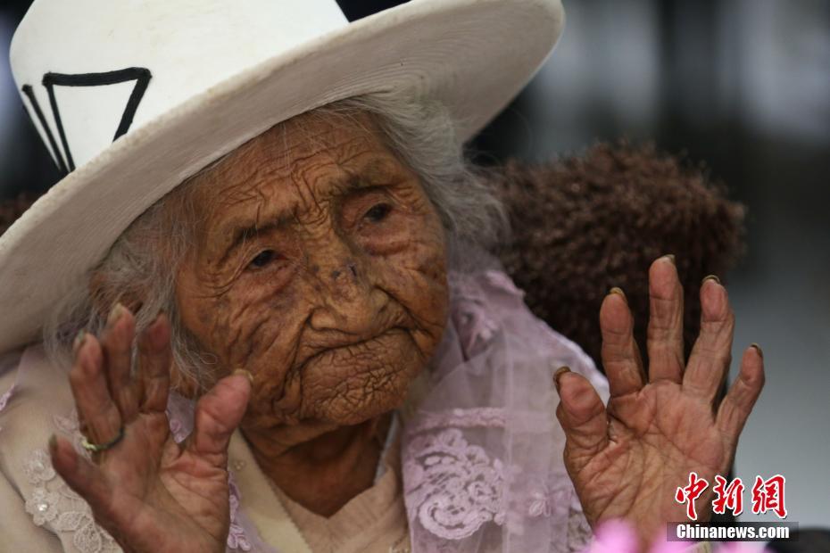 当地时间2018年10月26日,玻利维亚萨卡巴(Sacaba),玻利维亚老人茱莉亚·弗洛雷斯·柯尔克( Julia Flores Colque)庆祝118岁生日,她在当地被称为“妈妈茱莉亚”(Mama Julia)。萨卡巴市打算向吉尼斯世界纪录申请,承认她为玻利维亚乃至世界最长寿老人。据此前报道,生活在该国中部深山中的一位即将过118岁生日的老妪将有望成为吉尼斯世界纪录的最长寿者。