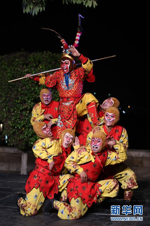 10月27日,在埃及首都开罗,演员在艺术节上表演。 27日晚,第三届中非艺术节在埃及开罗的玛内斯特丽雅宫拉开帷幕。此次艺术节为期一周,将有来自中国、埃及、南非、摩洛哥、伊拉克、博茨瓦纳等25个国家的艺术家在歌剧院以及孤儿院演出。 新华社发(艾哈迈德·戈马 摄)