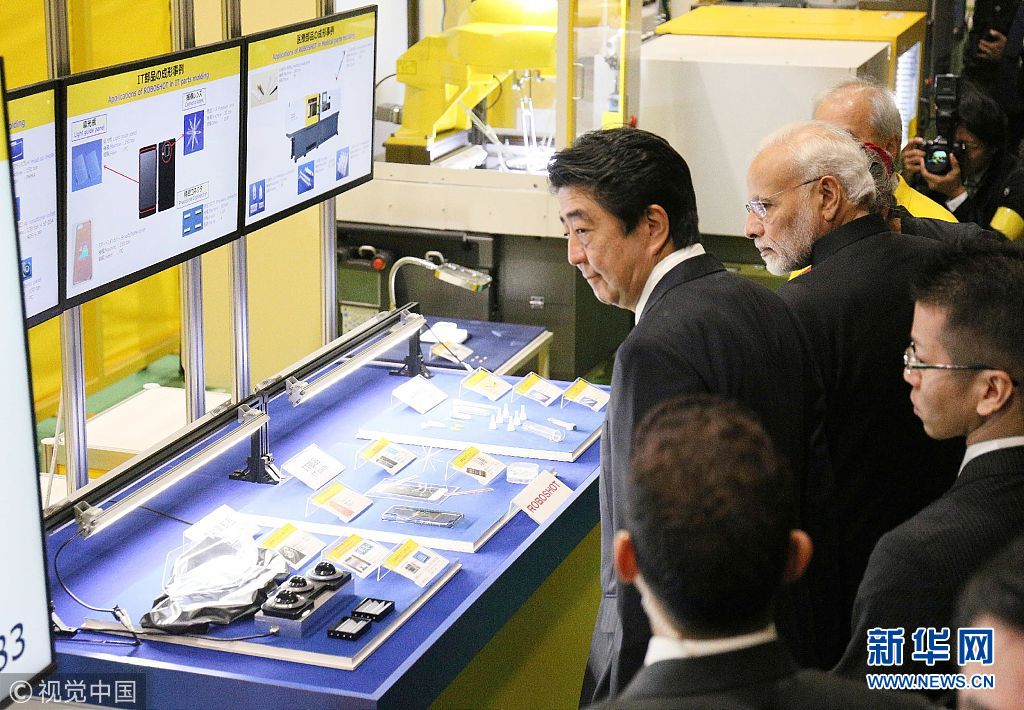 印度总理莫迪访日 同安倍一起访问发那科技术中心