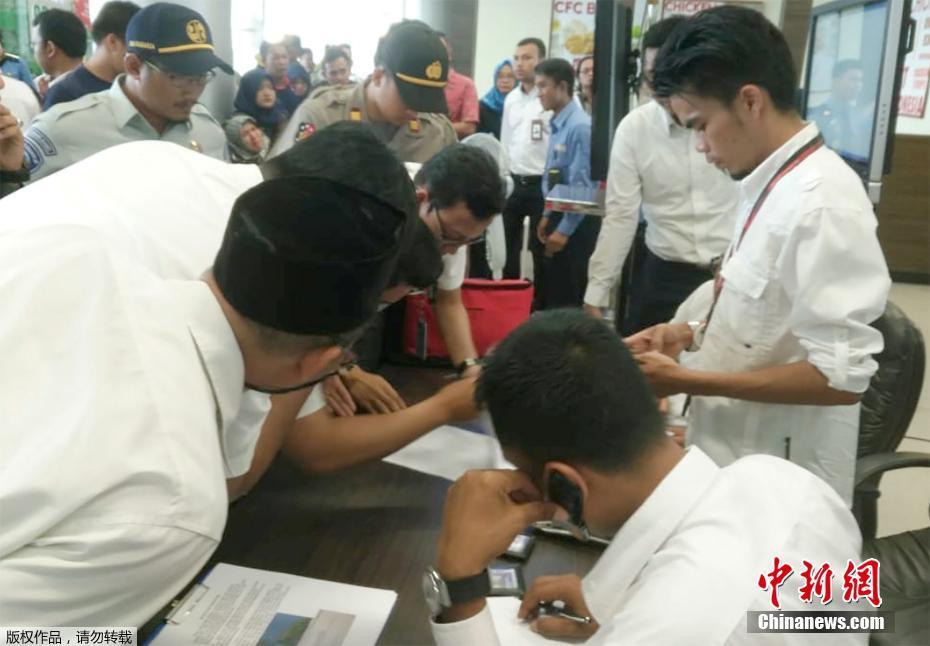 当地时间10月29日,印度尼西亚平浪邦加尔埃米尔机场,工作人员确认狮子航空JT610航班的乘客信息。