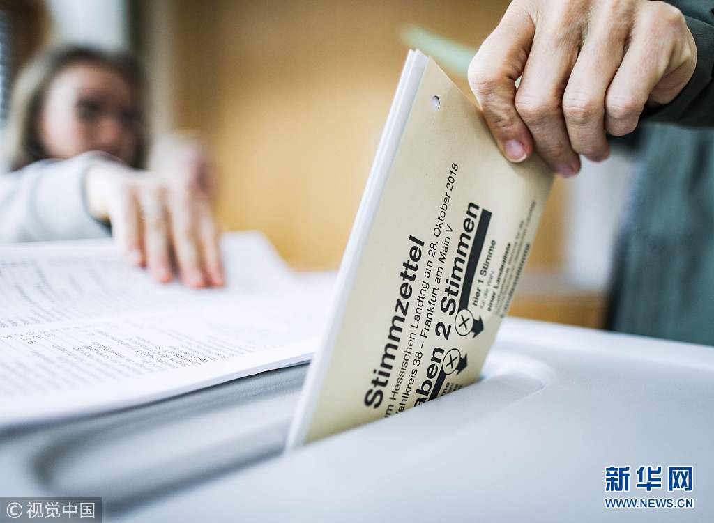 10月28日,在德国黑森州首府威斯巴登,黑森州州长布菲耶(前右二)在选举初步结果公布后发表声明。 28日公布的德国黑森州议会选举初步结果显示,德国总理默克尔所率基督教民主联盟(基民盟)及其执政联盟社会民主党遭遇重挫,得票下降均超10%。这是德国执政党继巴伐利亚州议会选举以来再度失利。 新华社记者罗欢欢摄
