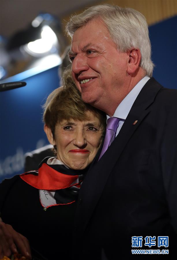 10月28日,在德国黑森州首府威斯巴登,黑森州州长布菲耶(右)在选举初步结果公布后发表声明。 28日公布的德国黑森州议会选举初步结果显示,德国总理默克尔所率基督教民主联盟(基民盟)及其执政联盟社会民主党遭遇重挫,得票下降均超10%。这是德国执政党继巴伐利亚州议会选举以来再度失利。 新华社记者罗欢欢摄