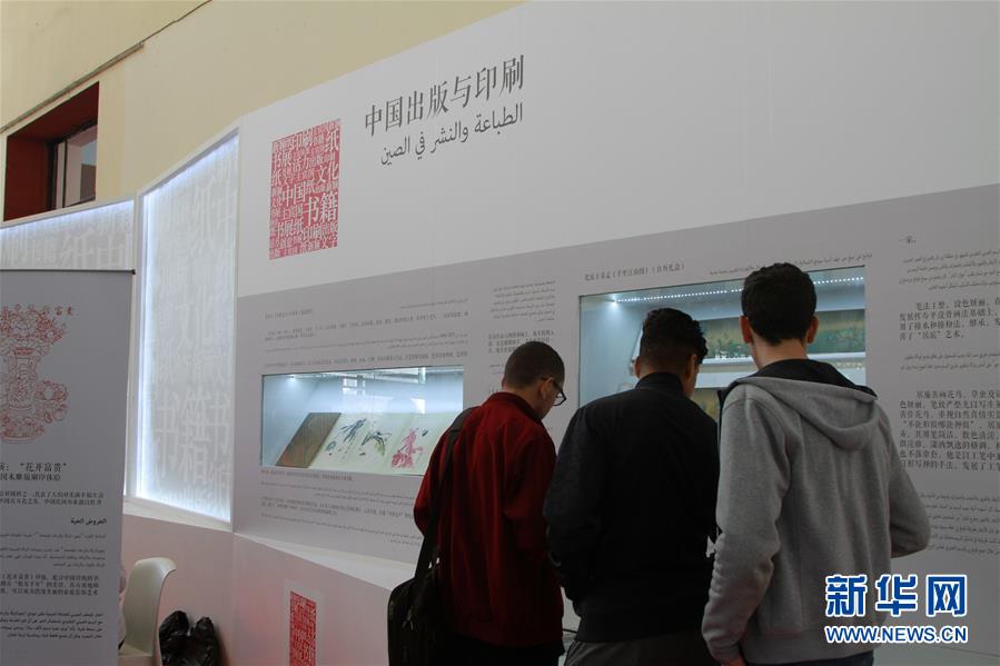 10月30日,在阿尔及利亚首都阿尔及尔,读者在阿尔及尔国际书展的中国展台前观看中国出版印刷文化展示。 新华社发