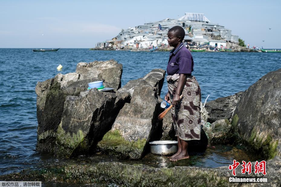 在2009年的时候岛上只有131名居民,不到8年间增加了900人,也导致该岛成为世界上人口密度最大的地方。这个岛屿周围的鱼类特别丰富,主要盛产尼罗河鲈鱼和罗非鱼。这些非洲渔民为了获得这里极其丰富的鱼类,所以才拼命往岛上挤。图为一名妇女在岸边洗洗涮涮。